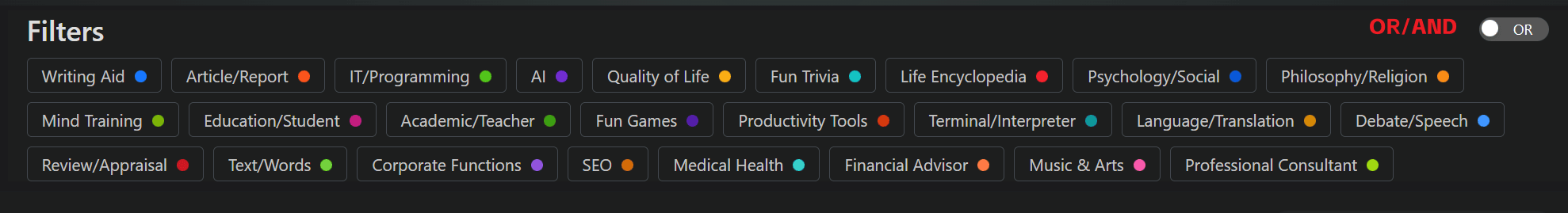 - OR ルール(デフォルト):選択したタグのいずれかを持つプロンプトを表示